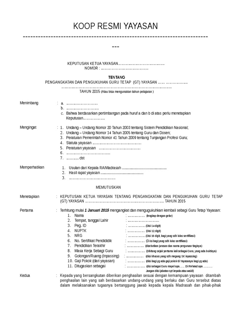 Sk Guru Tetap Yayasan Muhammadiyah from imgv2-2-f.scribdassets.com Maybe you would like to learn more about one of these? Masa berlaku sk guru tetap yayasan. Check spelling or type a new query. We did not find results for: