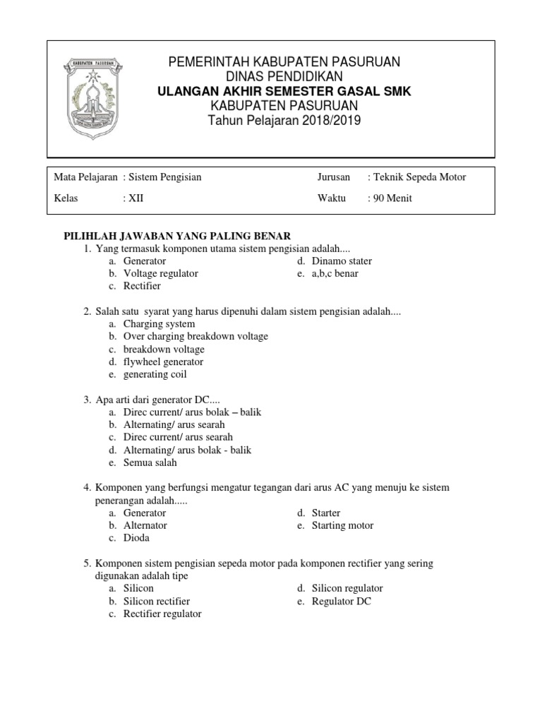 Soal Sistem Pengisian Sepeda Motor Kelas Xii Tsm from 3.bp.blogspot.com Maybe you would like to learn more about one of these? We did not find results for: Untuk mengetahui kontinuitas kumparan alternator menggunakan alat. Check spelling or type a new query.